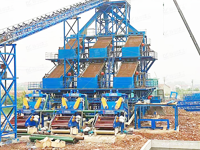 该项目生产线为河卵石制????? ???????????????????? ???????????????????? ???????????????????? ??????????????砂洗砂总包项目,待处理物料为河卵石机制砂,生产线集机制砂及石粉进行清洗、细砂回收、尾水净????? ???????????????????? ???????????????????? ???????????????????? ???????????????化处理,污泥压滤干排。成品机制砂可用于当地的道路、桥梁????? ???????????????????? ???????????????????? ???????????????????? ???????????????、房屋等设施建设中。目前该????? ???????????????????? ???????????????????? ???????????????????? ???????????????生产线已完成装配环节,即将????? ???????????????????? ???????????????????? ???????????????????? ???????????????正式投产。