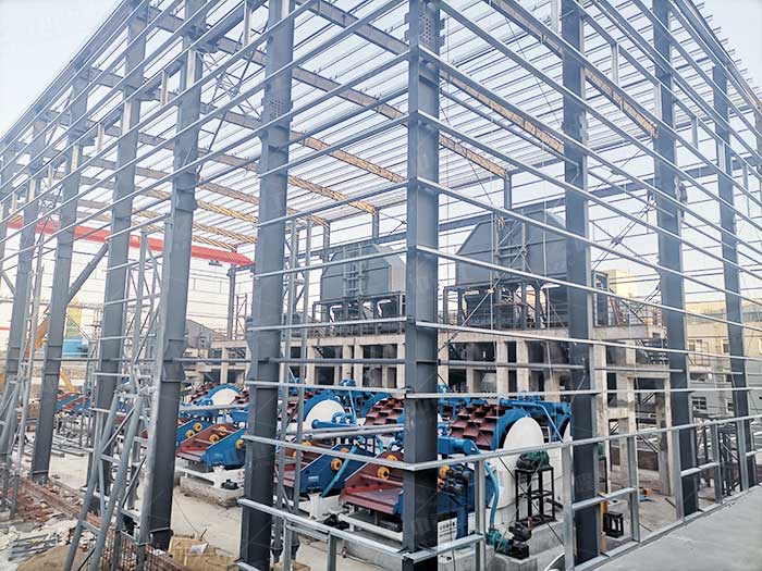 原料经给料机送入粗碎设备中进行初步破碎; ????? ???????????????????? ??????????????????? ???????????????????? ??????????????? 后由输送机运到中细碎设备处进行二次破碎;接下????? ???????????????????? ???????????????????? ???????????????????? ??????????????来振动筛筛分大骨料,再由制砂机进行制砂????? ???????????????????? ???????????????????? ??????????????????? ???????????????后再次筛分小骨料,结尾工作为除尘、选粉或洗砂、????? ???????????????????? ???????????????????? ???????????????????? ???????????????回收。